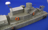 Resin hulls with resin and white metal fittings. With optional parts to make a CCB (Command & Control Boat) version. (as per pictures below)