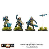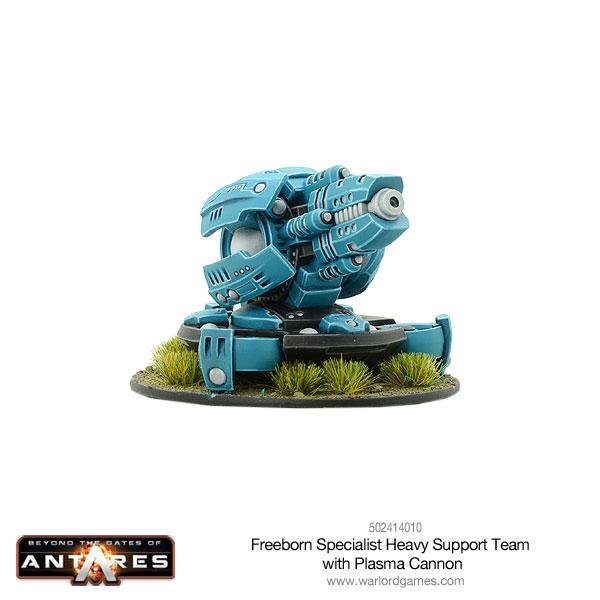 The forces of the Freeborn are drawn from the people as required, and only a tiny fraction forms any kind of standing army. Aside from the personal troops of the Houses’ ruler, its Vard, there are some who specialise in maintaining and operating the more sophisticated weaponry to be found in every House’s arsenal. Such a weapon is the fearsome plasma bombard: the largest and most powerful mobile plasma weapon available to any troops in Antarean space.